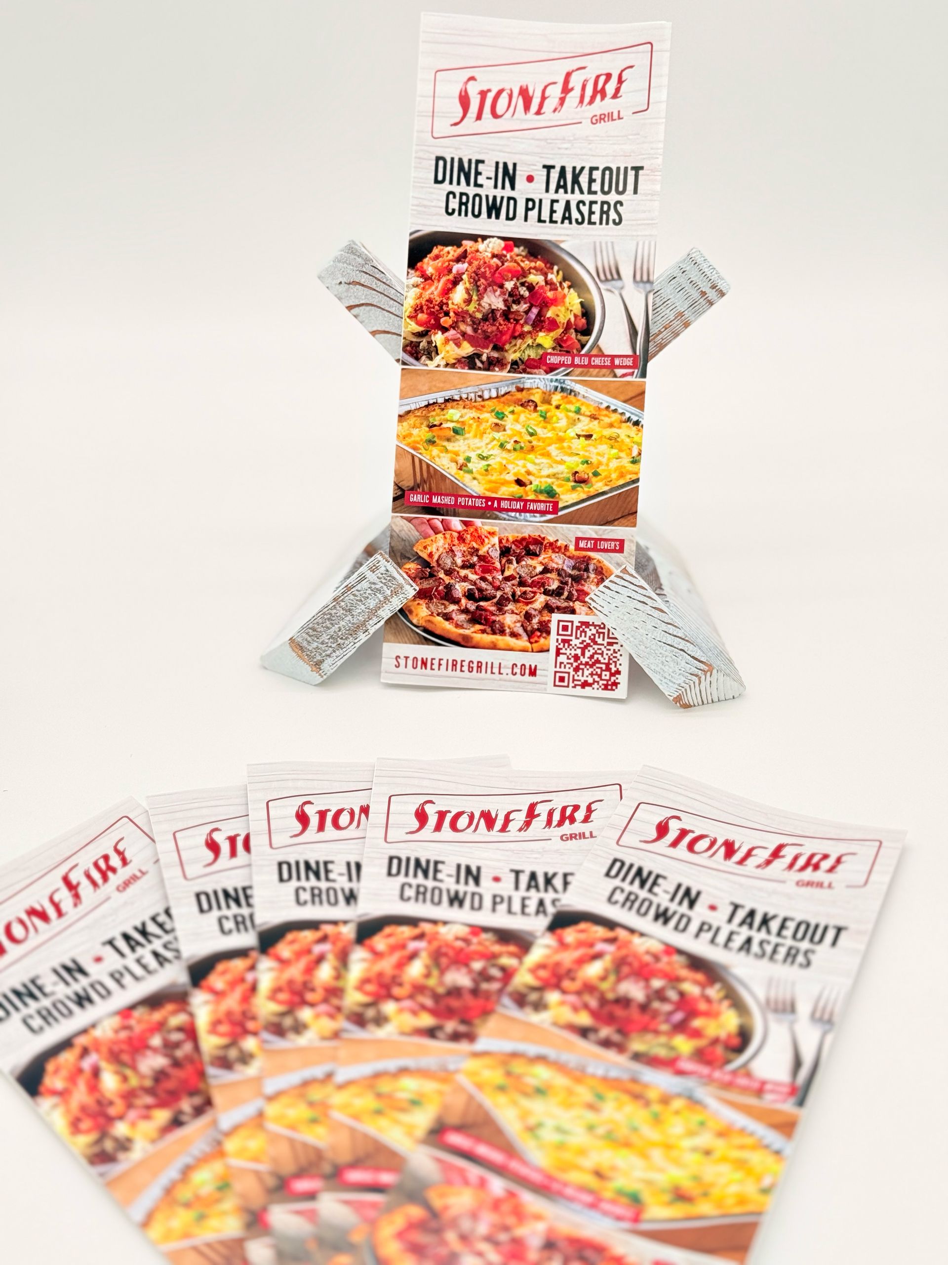 | Postcards, rack cards, menus | Letterhead + Envelopes | Booklets + magazines |